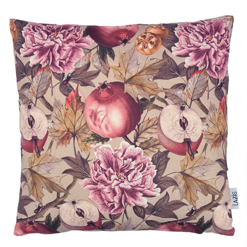DETAILS -Printstoff mit Früchten, Blüten und Blättern Fond hellbraun
