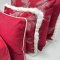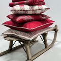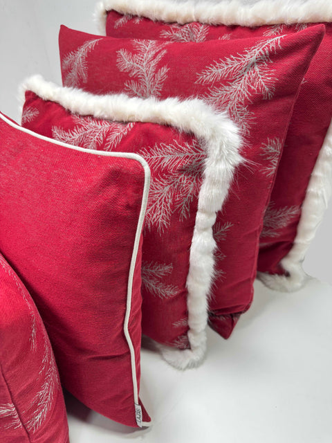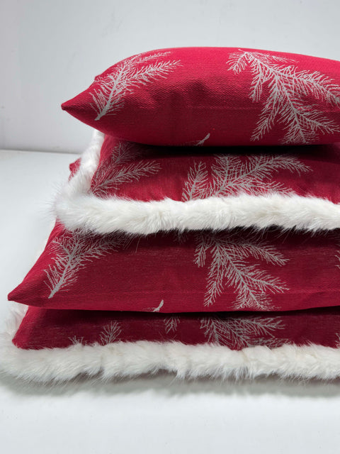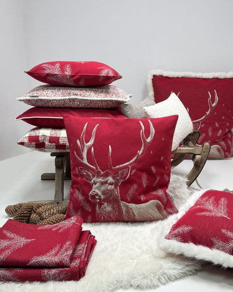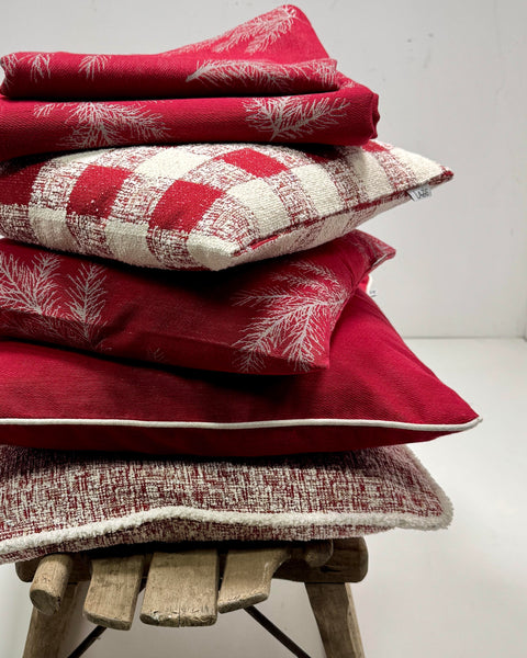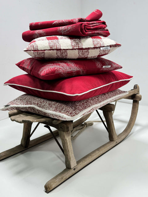 PFLEGEHINWEISE -30 Grad waschbar FARBE - rot-creme-grau DETAILS -Gewebtes Design mit Tannenzweigen Fond rot |