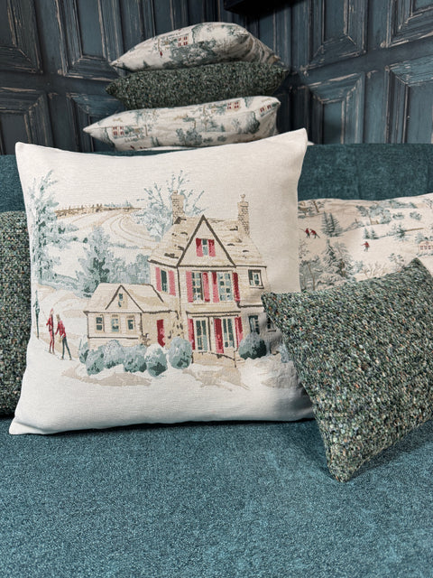 PFLEGEHINWEISE -30 Grad waschbar FARBE - gemischt DETAILS -Gewebtes Jaquard Design mit Winterlandschaft und Haus |