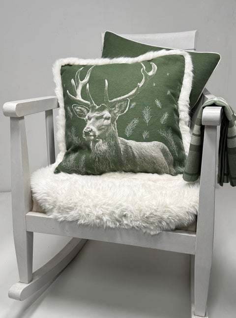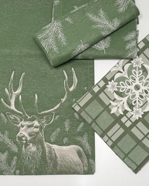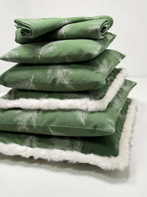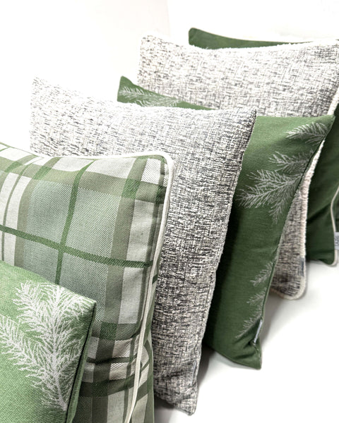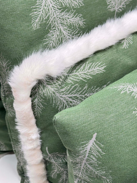 PFLEGEHINWEISE -30 Grad waschbar FARBE - grün-creme-grau DETAILS -Gewebtes Design mit Tannenzweigen Fond grün |