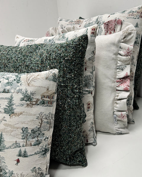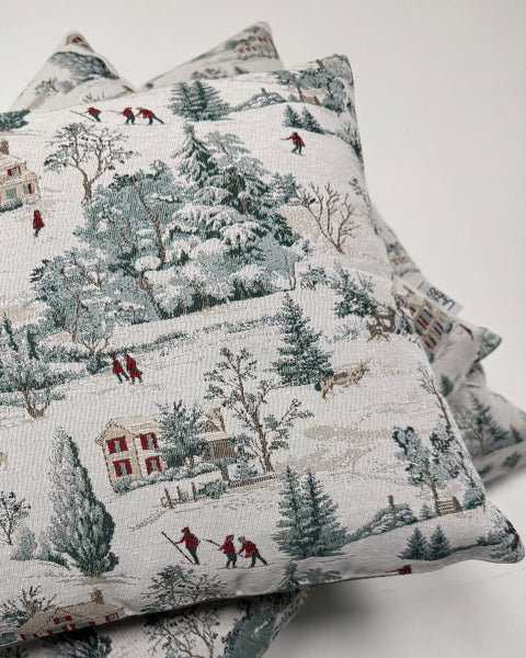 PFLEGEHINWEISE -30 Grad waschbar FARBE - gemischt DETAILS -Gewebtes Jaquard Design mit Winterlandschaft und Haus |