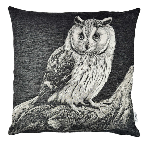 PFLEGEHINWEISE -30 Grad waschbar FARBE - gemischt mit Reißverschluss DETAILS -Gewebtes Eulenmotiv Fond schwarz /Rückseite uni schwarz |